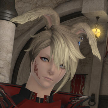 He lived like any other traditional Viera. He guarded his forest and rarely spoke with others, let alone other non-Viera for decade upon decade. In fact, he had forgotten his birthname.Seeing as the forest he used to watch over were the forests of Coerthas, he was the only Viera living in the area. Even before the calamity turned them into snowfields, the trees were barely thick enough to call a forest in the first place, so he was the only one necessary. He had no complaints about it, and in fact enjoyed his solitary life. Trained in the sword, archery, and conjury he was entirely self-sufficient and did his job as a forest watcher to the best of his ability. Until The Calamity scattered everything.When the climate of Coerthas changed, the ecosystem was sent into chaos. The Viera did his best to protect the wildlife of the area, but with so many monsters suddenly running wild he had little control over the situation. In the days following he may as well have been locked in a state of shock. Everything he had ever known had been uprooted in an instant, through no fault of his own. The one animal he was able to save with his efforts was a baby sparrow, one he took in and raised on his own.In the aftermath something in him broke. Mentally as well as physically. Like the climate of Coerthas had changed with the aether, so too had his. Living in the same span of forest for 100+ years had attuned him to the area's aether so distinctly that the changes wrought in it were also wrought in him. His heart slowed, his body grew colder, his own aether aspected heavily to ice. The color of his eyes becomes an icy blue, different from the earthy green they were before.As well, the shift in his aether lead to a shift in his aptitude with magic. He lost much of his affinity for conjury with the change, no longer able to channel the powers of earth or water, only wind. His power to heal diminished slightly as well. On the other hand, he now had a natural affinity for ice magic, one he eventually learned to wield as proficiently as the elements he had lost.Additionally, he soon found his heats no longer followed a cycle, but came and went at random. Whenever they arrive the only warning is that his eye color shifts to a fiery red. This is soon followed by a complete flip in his aether, aspecting it heavily to fire and granting him increased affinity to fire magic as opposed to ice. In such a state, his heats make him liable to accidentally set things ablaze if he fails to control himself.Mentally however, where he used to be a gentle guardian the Viera now went on rampages against the monsters which still raged through what had once been a vibrant forest. A way to manage his anger whenever he felt helpless, which was often. He would frequently return to wherever he had set up camp with cuts and bruises scattered across his body, soaked in blood that wasn't his. The bird, whom he had named 'Twig' always waiting for him, almost seeming panicked on the Viera's behalf.This activity went on for months, whenever he felt the urge. Occasionally it even coincided with his heats, which would lead to...a different type of stress relief for him. Just as violent for the monsters in the end, far more pleasing for Luka.Eventually Ishgard was forced to take notice of him and track him down. Word of a monster stronger than the rest skulking about at night had been attributed to the Viera, and threats like that can't go overlookedA certain white-haired Elezen soldier was the one to approach him, alone. He was offered a choice. Be taken into custody, or take an offer of a new life in Ishgard. Reluctantly, he accepted a life in the city. As is tradition for Viera, he adopted a new name upon assimilating with civilization, the name of Luka. Simple, as was his wont, but befitting the culture he would be spending the foreseeable future among. Or so he was told.In the following years Luka lived among the Ishgardians, with Twig coming with him. He still preferred a quieter life and rarely spoke to others, save for the man who had brought him there. Haurchefant, he said his name was. He had insisted on continuing to speak and Luka didn't have the endurance to refuse him over and over again.Luka spent years there in Ishgard, gradually warming to the place and it's people in spite of his reclusive nature. When he first got ideas of leaving to explore the wider world, it had come as a shock to everyone who knew him. The slow trickle of information into Ishgard thanks to it's closed borders was still enough to make him curious, but only once the borders were finally opened again was he was granted leave to travel, thus he set out on his own with Twig by his side.